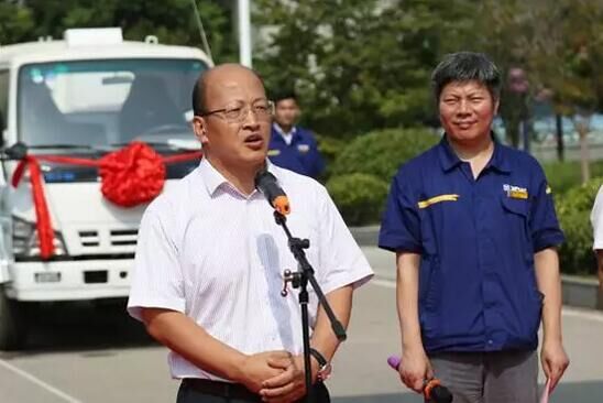 徐工環境總經理劉慶東在發車儀式上致辭