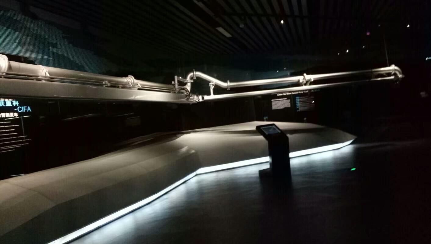引導人員還特別向我們介紹了中聯的科技產品——碳釬維臂架,相比較鋼鐵材質的臂架,同樣大小體積的臂架,碳纖維臂架只有傳統臂架五分之一的重量,完美的解決了臂架長度問題,這一產品的出世,展示了中聯在技術方面不斷的鉆研和追求。