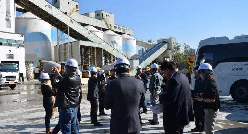 下午,由韓國協會安排考察了有進混凝土集團。韓國目前為止全國分布1050家混凝土攪拌站有進商砼集團擁有50余家攪拌站,年產量占全國產量的10%,是韓國砼行業的龍頭企業。考察團一行受到有進集團熱忱接待,參觀了生產線及實驗中心。