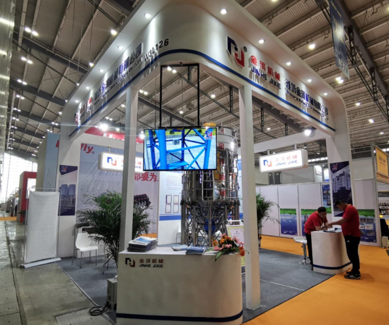 金河機(jī)械攜片式水泥倉(cāng)和整體水泥倉(cāng)架構(gòu)以及多項(xiàng)國(guó)家專利技術(shù)亮相長(zhǎng)沙國(guó)際工程機(jī)械展覽會(huì)。