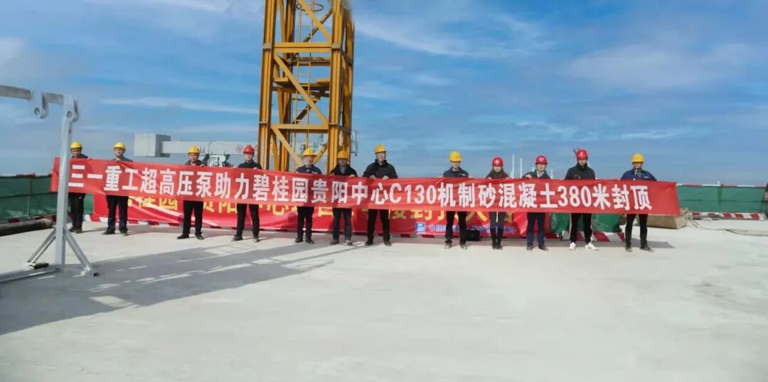 12月7日,碧桂園貴陽中心工程貴州機制山砂C130超高泵送(380米)高性能混凝土澆筑項目順利啟動,貴陽中心也終于迎來了封頂大吉的好日子。