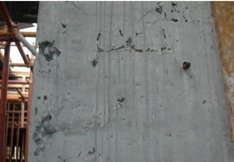 (2)縫模板支吊不牢、變形、漏漿;
