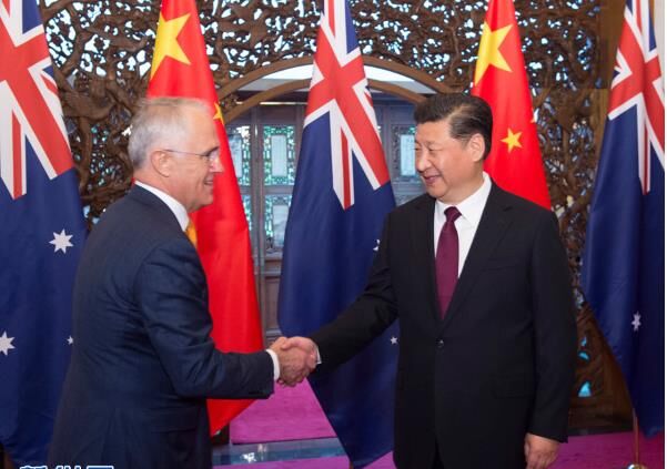 習近平指出,當前,中澳關系保持積極發展勢頭,兩國各領域交流合作日益密切。中澳全面戰略伙伴關系具有強勁活力,雙方要把握兩國關系發展正確方向,尊重彼此核心利益和重大關切,確保中澳關系持續健康穩定發展。希望雙方做好中方“一帶一路”倡議同澳方“北部大開發”計劃、中國創新驅動發展戰略同澳方“國家創新與科學議程”的對接,實施好中澳自由貿易協定,探討開展更多務實合作項目,推進司法執法、防務等領域交流合作。