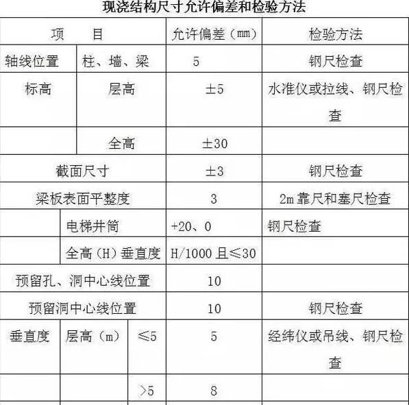 現澆結構尺寸允許偏差和檢驗方法