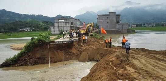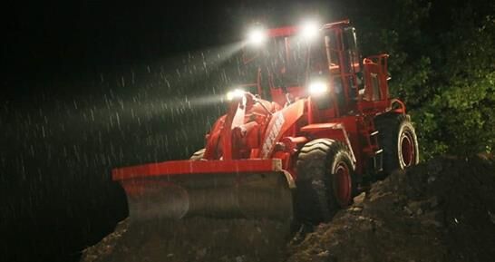 “1號裝載機注意,迅速對前方石料進行前推,一次合攏堤壩”。7月4日凌晨5時,在大雨中,隨著指揮旗抬起,麻城市龍池橋宋家河村固道長43米潰壩,經過武警交通六支隊10名官兵21小時連續奮戰,被成功封堵合攏?!?臺裝備配備3名官兵,每臺裝備1名安全員,2名操作手,確保操作手能夠輪換,做到人歇機不歇?!蓖ㄟ^科學編組,在狹窄的壩頂,水上挖掘機、裝載機晝夜不停展開搶險。在麻城抗洪搶險戰斗中,針對潰口處河堤道路狹窄,運輸石料困難,搶險官兵迅速制定搶險方案,采取對向推進,兩側供料,挖推結合的戰法堵口。根據現場實際,在潰口左側配備1臺裝載機、1臺水上挖掘機,在右側配備1臺挖掘機,地方運料車配合,確保發揮裝備最大效能。推料、倒料、拍實、碾壓……,燈光照耀下,裝載機操作手蘇鵬與安全員密切配合,迅速在潰口上方完成一連串動作。10米、8米、2米,在一次次填筑推進下,潰口的長度越來越短,終于在凌晨5時11分,堤壩完全合攏,成功排除險情。