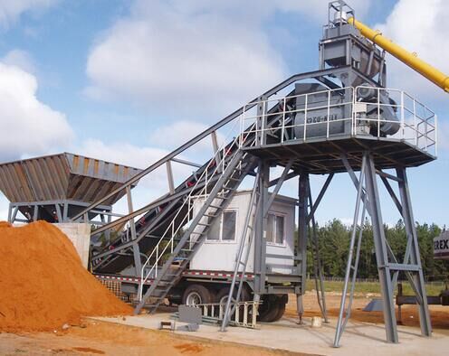 拖掛式移動混凝土攪拌站的特點:該系列攪拌站采用半拖掛式設計。自帶行走系統與標準牽引銷。用一個車頭即可將攪拌站拖走。結構緊湊,架設快捷,免基礎、免調試,從安裝到使用只需一天時間。