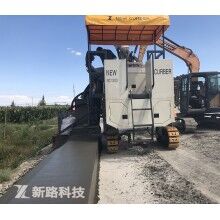該設備采用三履帶行走驅動,水泥混凝土經過輸料裝置,進入成型模具,然后通過振動棒振動和模具擠壓,一次攤鋪成型用戶需要的水泥結構物。通過更換模具及對車輛和模具狀態的精確調整和控制可以實現各類路緣石、硬路肩、防撞墻、公路中央分隔帶、水溝/匯水槽/排水槽、下水道及安全環島等不同輪廓水泥混凝土結構物的精準鋪筑。