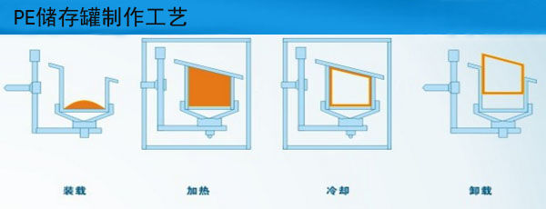 滾塑工藝的制作過程較為簡(jiǎn)單,我們將滾塑制作的步驟簡(jiǎn)化為以下的圖解:
