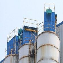 目前我國大力倡導綠色環保型混凝土生產要求,混凝土攪拌站主要生產單位需要進行適宜的變革。在混凝土生產中,尤其是商品混凝土生產企業中,料場的揚塵問題是目前制約企業環保化生產一個繼續解決的因素。在混凝土攪拌站中易產生粉塵的地方,主要是攪拌樓投料口、料場以及粉罐。為防止粉塵外溢對設備的攪拌樓屬封閉攪拌。能夠在生產中,進一步降低粉塵,利用封密的排塵口空間,將產生粉塵控制在封閉空間內處理。在水泥進料口,增設兩處對稱水霧噴射管進行粉塵的控制,從源頭防止粉塵擴散。料場中主要是在頂部加裝噴淋裝置,在料場揚塵較大時可以手動或者自動控制噴淋壓制粉塵,料場口也可以加裝攪拌站料場堆場噴淋裝置 料倉卸料區噴霧除塵系統,杜絕粉塵外溢。