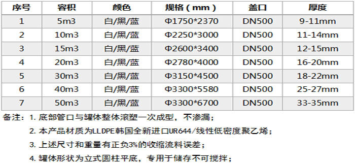 特點(diǎn):所用材質(zhì)為韓國(guó)進(jìn)口聚乙烯(PE)滾塑原料,儲(chǔ)罐一次成型,內(nèi)外光滑,具有良好的衛(wèi)生性與抗紫外線能力,耐酸堿、耐腐蝕、易清洗、不易老化。